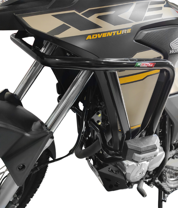 La defensa para la Honda XRE 300 ABS tipo touring vendida en la tienda Promecol no solo ofrece protección física, sino que también agrega un toque de estilo y personalidad a la motocicleta. Su diseño aerodinámico y elegante complementa perfectamente el aspecto general de la moto, sin comprometer su funcionalidad