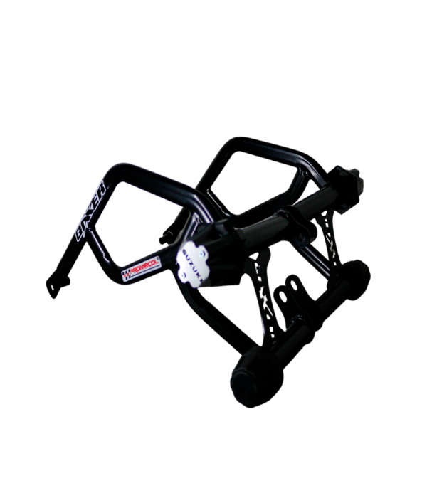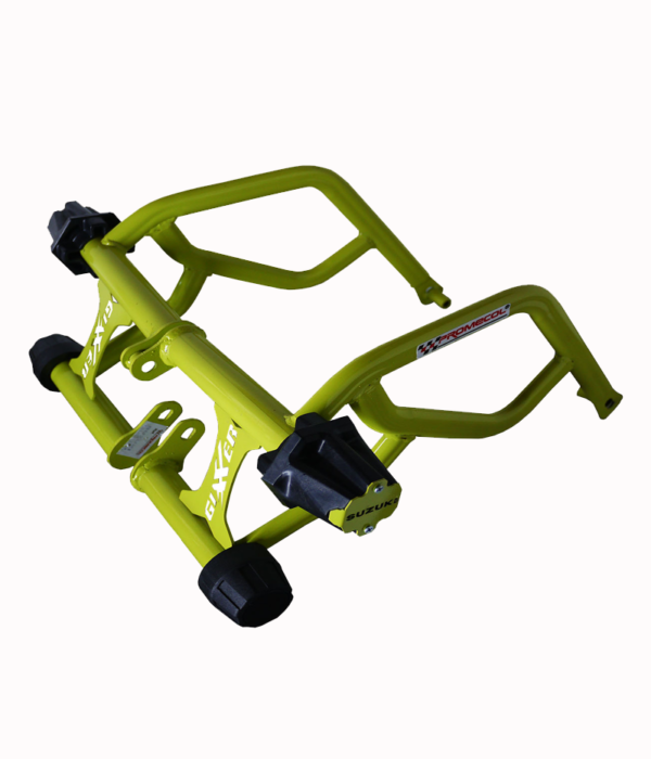 Con esta defensa, podrás proteger tu Gixxer 150 FI de golpes y raspones en caso de una caída, además de aportar un estilo agresivo y deportivo a tu motocicleta. Su diseño tipo stunt y su acabado en pintura electrostática en colores le dan un toque único y personalizado a tu moto.